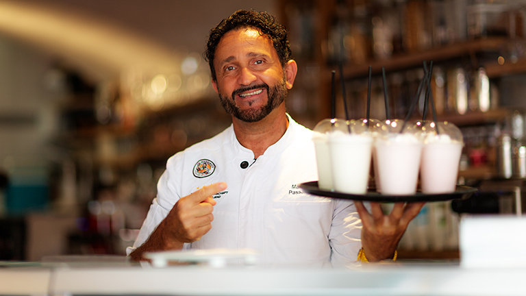 Eis, Kaffee, Burger, Kuchen und Pizza